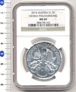 オーストリア 1オンス銀貨( ウィーンフィルハーモニー) 2014 MS69 [ NGC ]