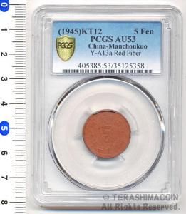 満州 5分 マグネサイト貨 康徳12年 AU53 [ PCGS ]